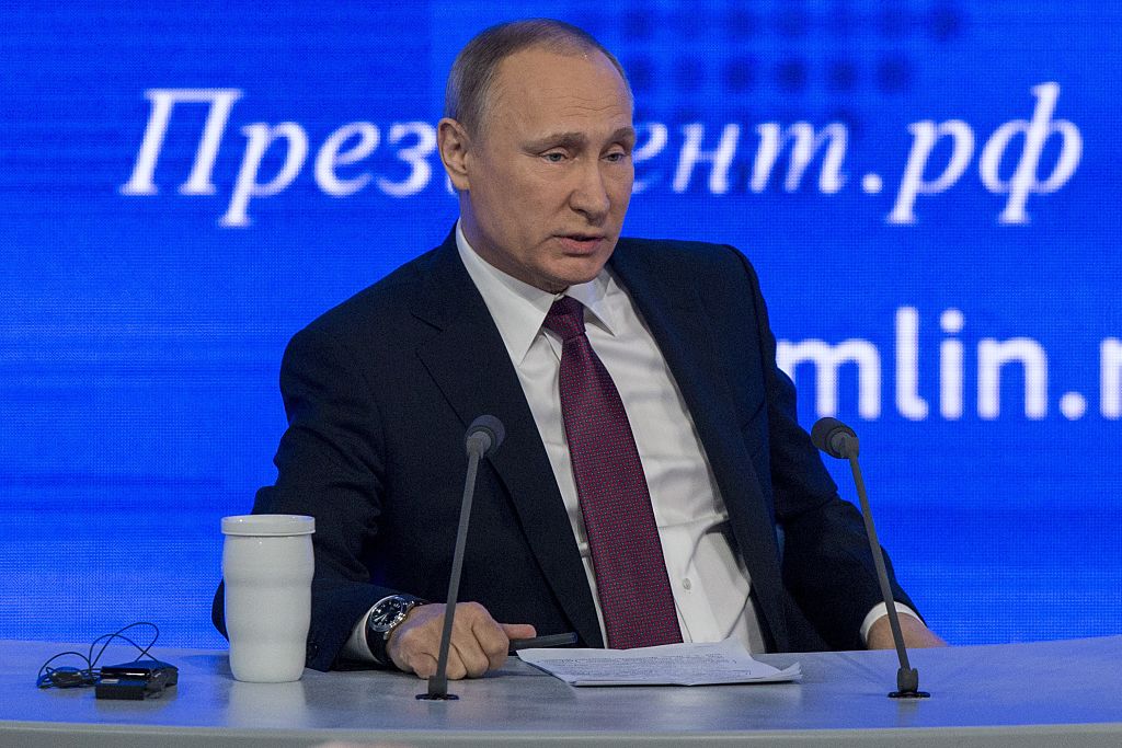 Tổng thống Nga Vladimir Putin trong một buổi họp báo thường niên được tổ chức ở Moscow ngày 23 Tháng Mười Hai 2016 (ảnh: Nikita Shvetsov/Anadolu Agency/Getty Images)