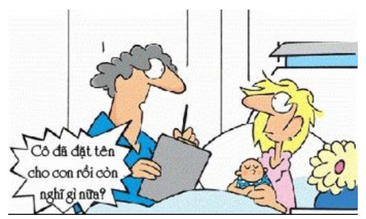 - Thưa bác sĩ... tôi đã tìm được tên cho cháu rồi. Bây giờ tôi đang tìm họ cho nó.