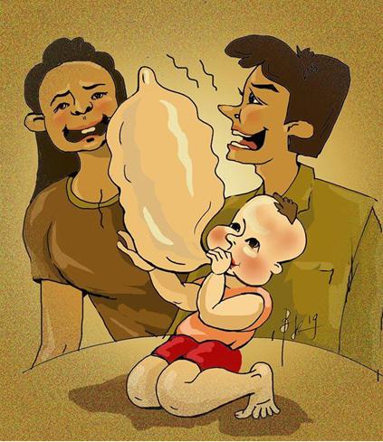 Trong không khí trầm lắng, bỗng một giọng nói to của thằng bé trong buồng vọng ra: Hộp bao cao su ở đầu giường của mẹ con thường lấy ra thổi làm bóng bay, những quả bóng nào thủng lỗ Con cất lại vào trong hộp…
