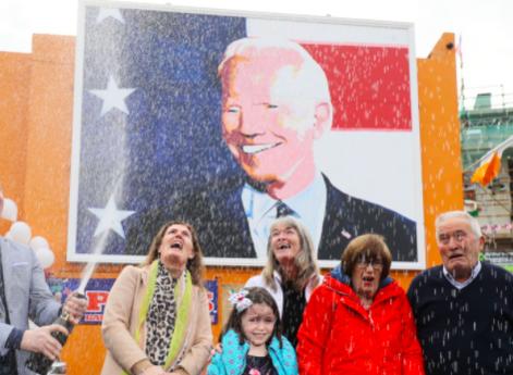 Tuần này, Tổng thống Biden - chắt của ông - sẽ được chào đón khi quay trở lại Ireland, với một bức tường có khuôn mặt của chính ḿnh ở quảng trường thị trấn.