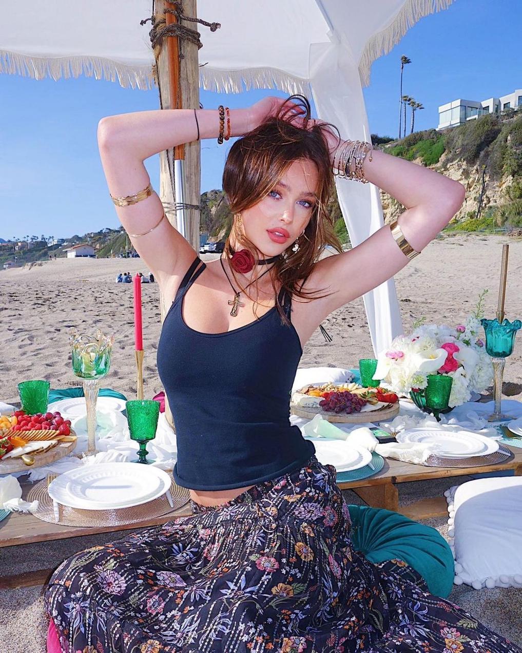 Trong những tấm hình đăng tải lên trang Instagram cá nhân, body thon gọn với vòng 1 nảy nở và vòng eo săn chắc của cô nhận được nhiều lời khen ngợi từ fans.