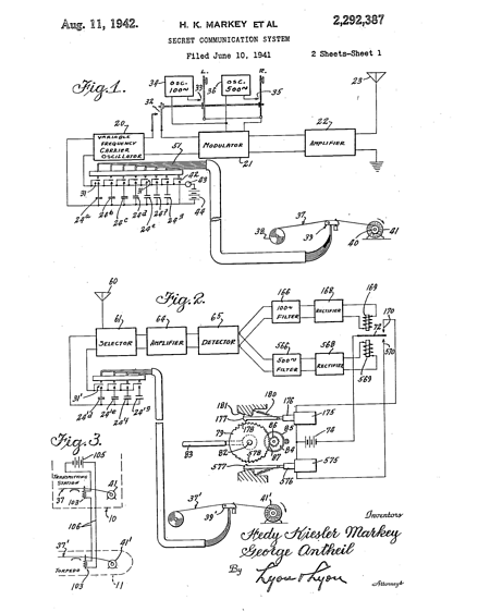 Mùa hè năm 1940, Lamarr liên hệ với bạn mình, nhà soạn nhạc George Antheil. Cả hai bắt đầu phát triển “hệ thống thông tin bí mật”. Sau này, Antheil kể lại: “Hedy không thoải mái khi ở lại Hollywood, kiếm nhiều tiền trong khi chiến tranh đang nổ ra. Cô ấy nói mình biết nhiều về các vũ khí bí mật và nghiêm túc nghĩ về việc bỏ MGM tới Washington, cống hiến cho Hội đồng Sáng chế Quốc gia mới thành lập”.