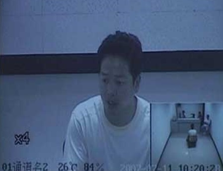 Hoàng Trung Văn qua màn hình giám sát của phòng thẩm vấn. Ảnh: People