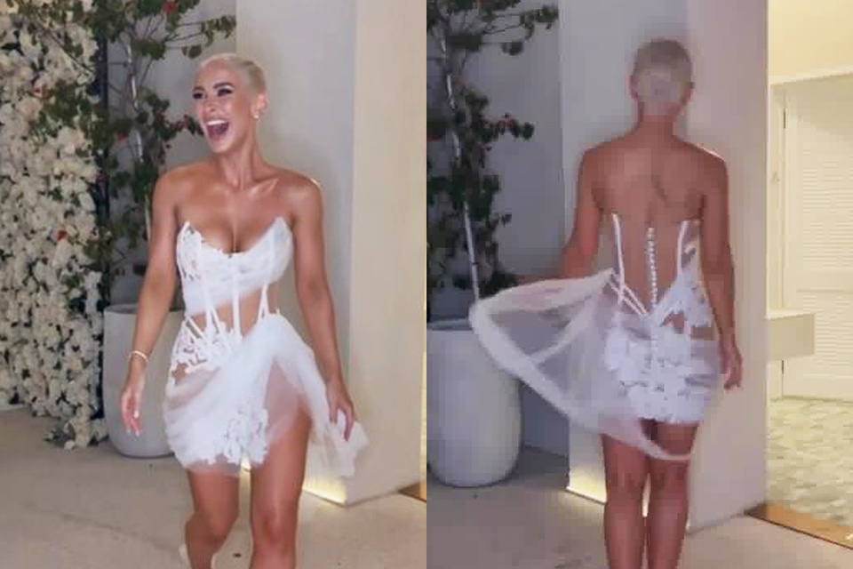 Chiếc váy cưới gây chia rẽ cộng đồng mạng. Ellie Gonsalves hứng chịu làn sóng chỉ trích trên mạng xã hội vì chiếc váy ngắn màu trắng, xẻ tà cao, được làm từ vải tuyn xuyên thấu.