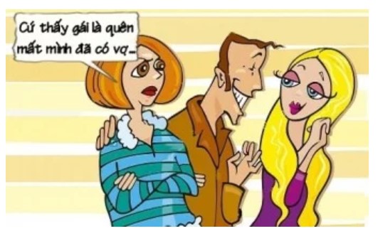 - Anh đến là tệ. Hễ anh cứ trông thấy một phụ nữ xinh đẹp là anh quên phắt ngay mình là người đã có vợ.