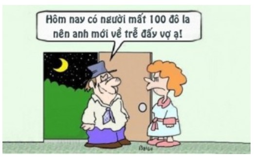 - Lúc chiều đi làm về, anh thấy một bà cụ bị mất 100 đô la.