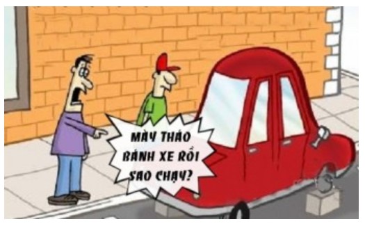 - Mày điên à? Tháo bánh xe hết rồi lấy gì mà chạy?