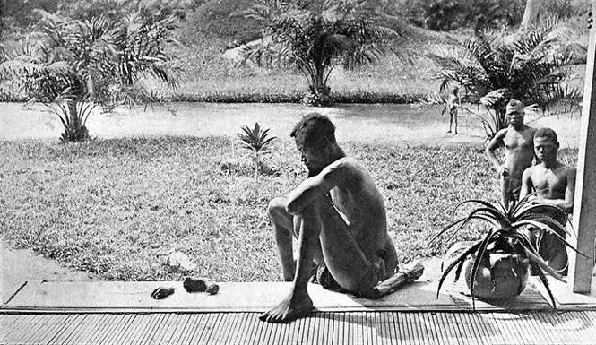 Lính đánh thuê đang cầm bàn tay bị chặt lìa của nô lệ tại Bolenge và Lingomo, Congo năm 1904.