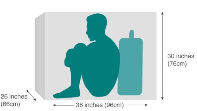 Kích thước chiếc thùng gỗ chứa Robson và vali. Đồ họa: BBC