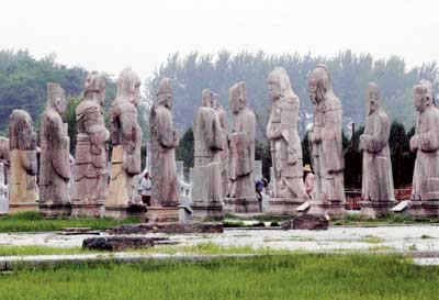 Tượng khắc đá văn thần võ quan trên Thần lộ của lăng Minh Hiếu.