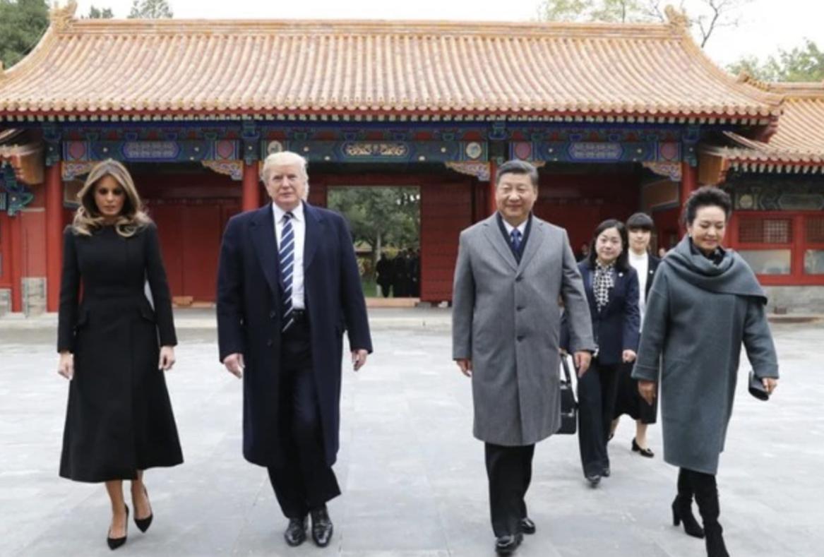 Chủ tịch Trung Quốc Tập Cận Bình và Phu nhân cùng Tổng thống Mỹ Donald Trump và Phu nhân thăm Tử Cấm Thành, ngày 8/11/2017. (Ảnh: EPA)