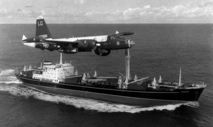 Máy bay tuần thám Mỹ bám theo tàu hàng Liên Xô trên Đại Tây Dương cuối năm 1962. Ảnh: US Navy