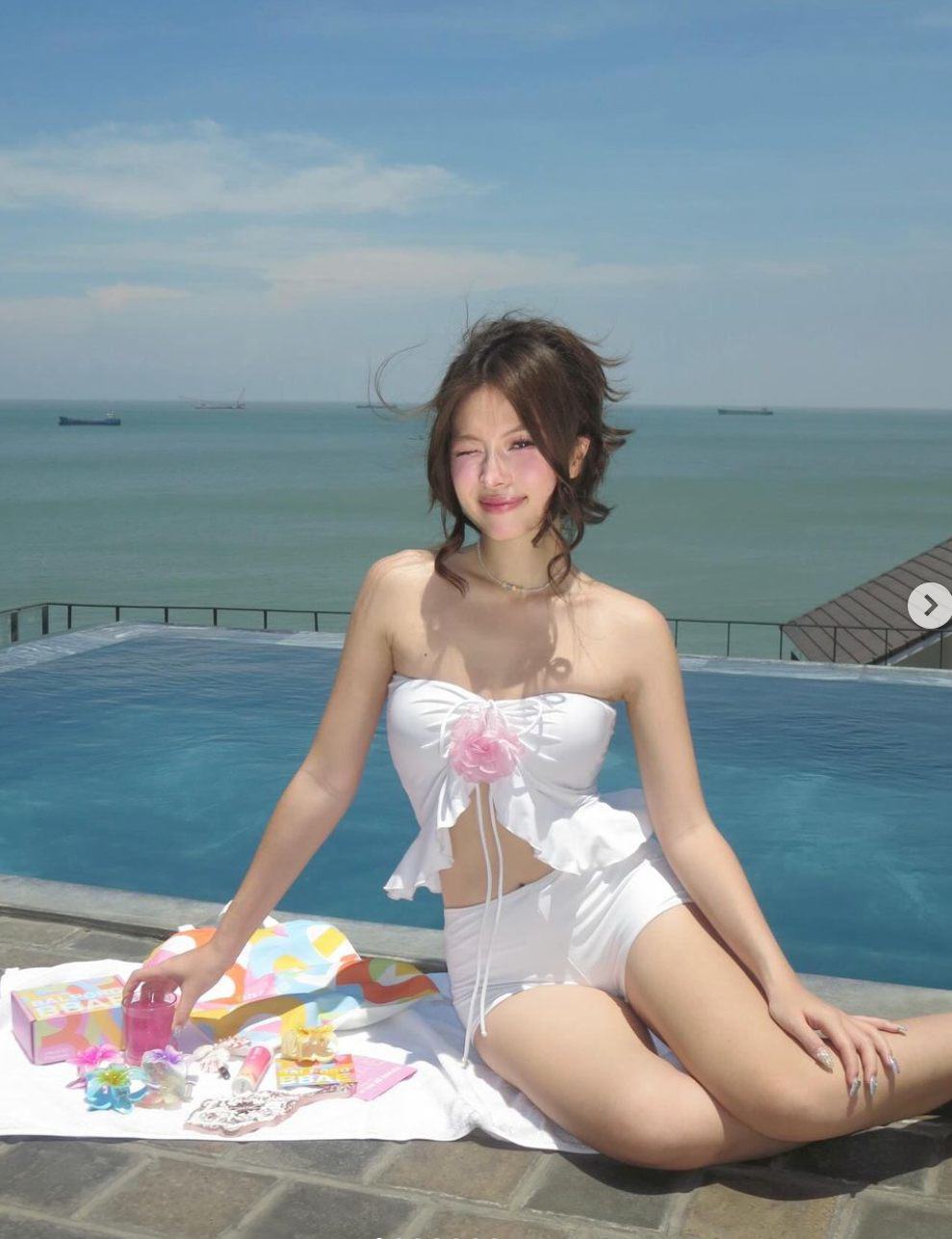 Trước đó, Thụy Hân cũng từng khiến công chúng bất ngờ khi khoe dáng với chiếc váy đan thắt tông màu đen ấn tượng, bộ cánh được sử dụng mặc bên ngoài bikini phía trong, tạo thành tổng thể quyến rũ mà vẫn lạ mắt khi đi biển màu hè này.