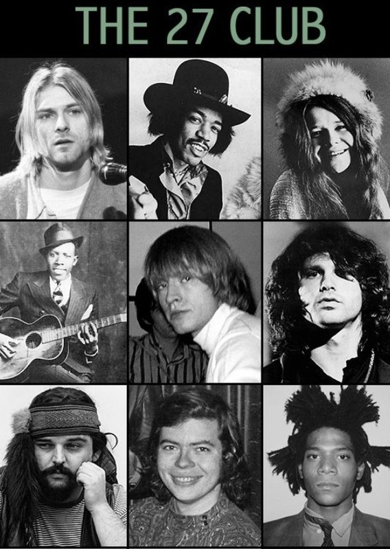 Một số nghệ sĩ nổi tiếng như Brian Jones, Jimi Hendrix, Janis Joplin, Jim Morrison, Kurt Cobain... qua đời năm 27 tuổi. Những nghệ sĩ chết khi 27 tuổi này được cho là nạn nhân của một "lời nguyền chết chóc".
