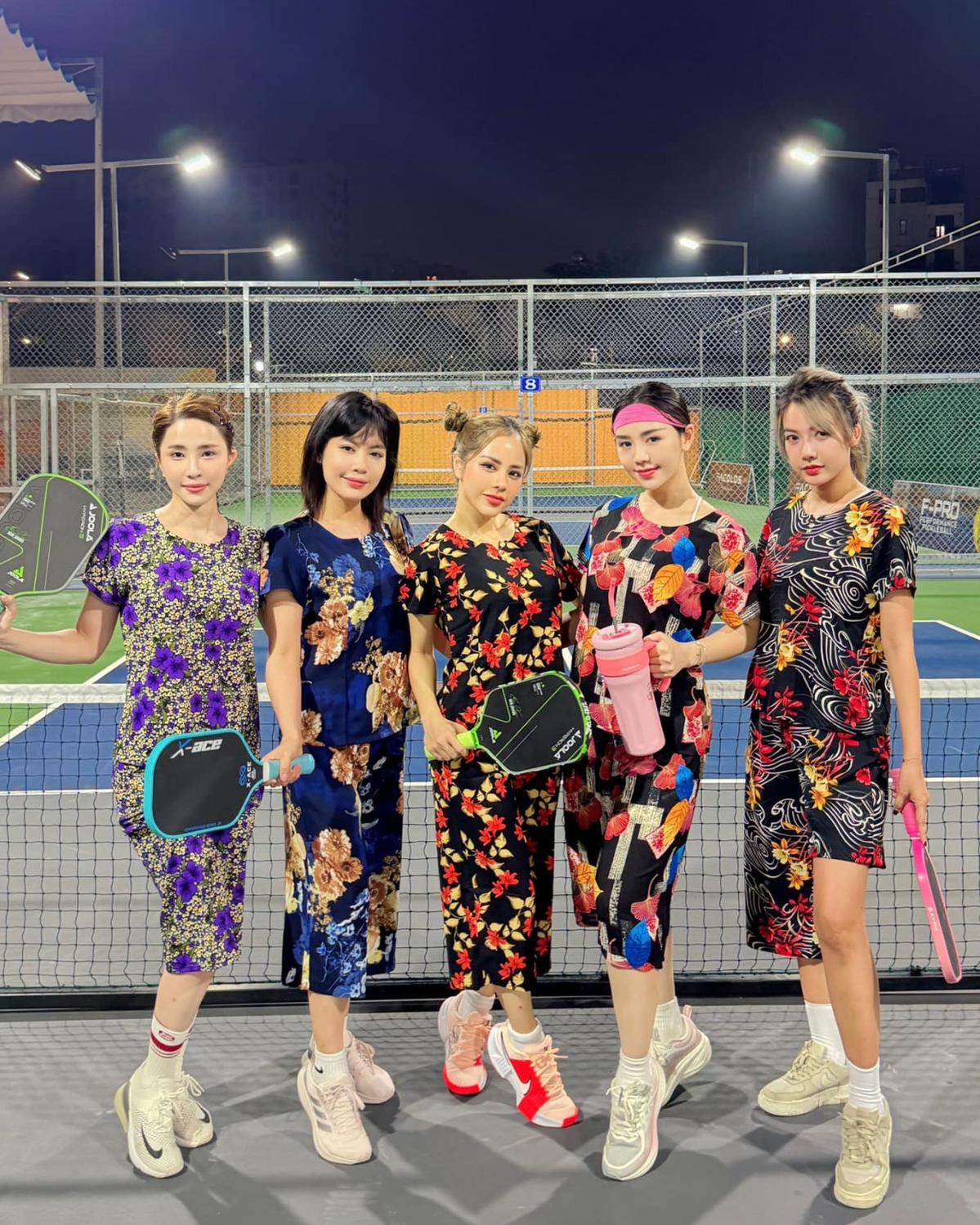 Khoảng một tháng nay, Quỳnh Nga (bìa trái) chăm chỉ ra sân chơi pickleball cùng hội chị em như MC Bạch Lan Phương, diễn viên Quỳnh Kool... Trong bức hình mới đây check-in ở sân tập, nhóm mỹ nhân gây chú ý khi mặc đồ bộ như các bà, các mẹ.