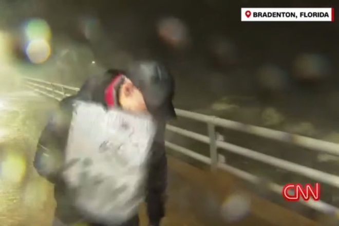 Người dẫn chương trình của CNN không phải là phóng viên duy nhất gặp nguy hiểm vào đêm 9/10 khi bão Milton đổ bộ.