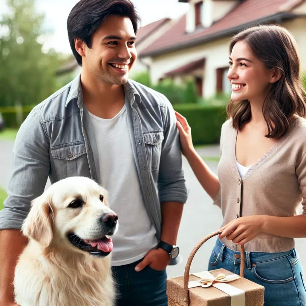 “Tuyệt,” cô nàng nói. “Anh có thể trông giúp em con chó không?”