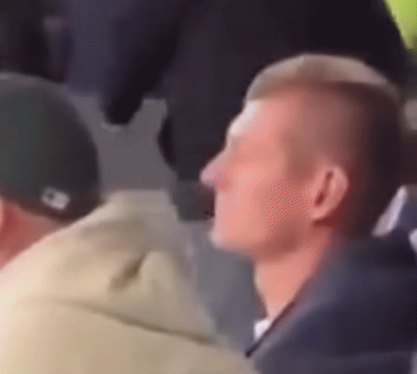Trên mạng xã hội, người hâm mộ chia sẻ đoạn video Toni Kroos ngồi dựa lưng vào ghế ở khu vực khán dài VIP của sân Bernabeu cùng đôi mắt nhắm nghiền. Trong khi đó, người ngồi cạnh anh vẫn đang chăm chú theo dõi trận đấu.