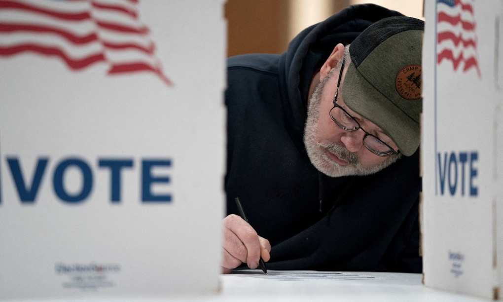 Một cử tri Mỹ đi bỏ phiếu trong vòng bầu cử sơ bộ ở Wisconsin hồi tháng 4. Ảnh: Reuters