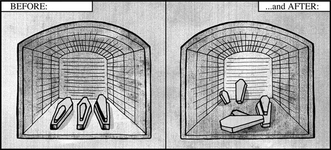 Và câu chuyện vẫn chưa chấm dứt. Bởi cho dù các thành viên trong dòng họ Chase có tìm đủ mọi cách để bảo vệ hầm mộ của gia đình thì cứ mỗi lần chôn cất một người thân, họ lại phải chứng kiến cảnh những chiếc quan tài chạy khỏi vị trí mà lần trước họ đã đặt chúng.