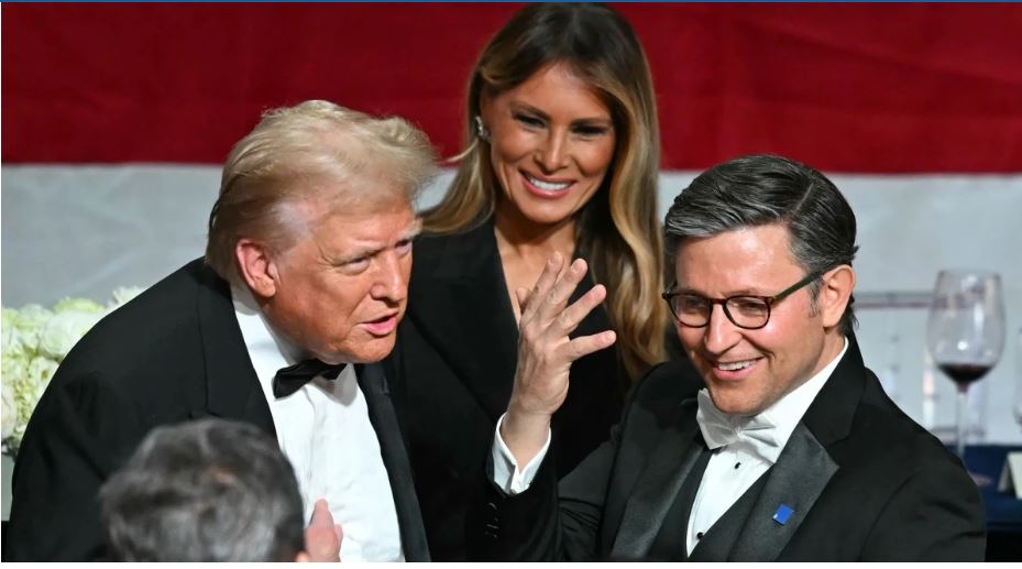 Cựu Tổng thống Donald Trump (bên trái) và Chủ tịch Hạ viện Mike Johnson. Ảnh: Getty
