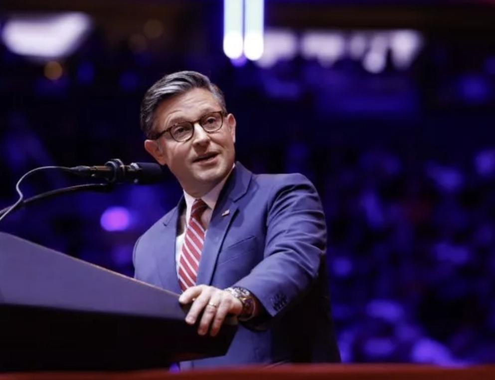 Chủ tịch Hạ viện Mỹ Mike Johnson tại cuộc vận động cho cựu Tổng thống Donald Trump ở New York, tối 27/10/2024. Ảnh: Getty