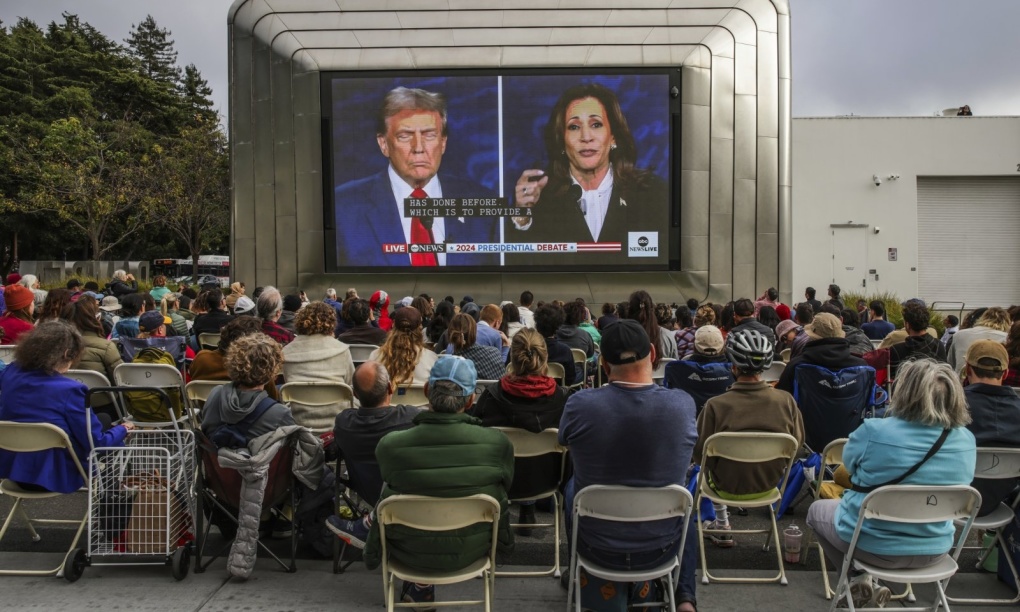 Người dân theo dõi cuộc tranh luận giữa cựu tổng thống Donald Trump và Phó tổng thống Kamala Harris tại Berkeley, California, hôm 10/9. Ảnh: AP