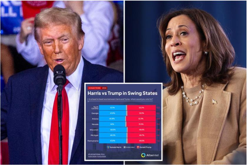 Theo một cuộc thăm dò của New York Times/Siena được công bố hôm 3-11, bà Harris dẫn trước ông Trump sít sao ở Nevada, Bắc Carolina và Wisconsin, trong khi ông Trump duy trì lợi thế của mình ở Arizona và bắt kịp bà Harris ở Pennsylvania.