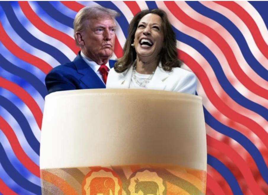 Trò chơi “uống rượu tranh luận” khi hai ứng viên Kamala Harris và Donald Trump tranh luận trực tiếp hồi tháng 9/2024. Ảnh: New York Post.