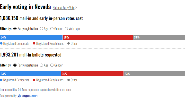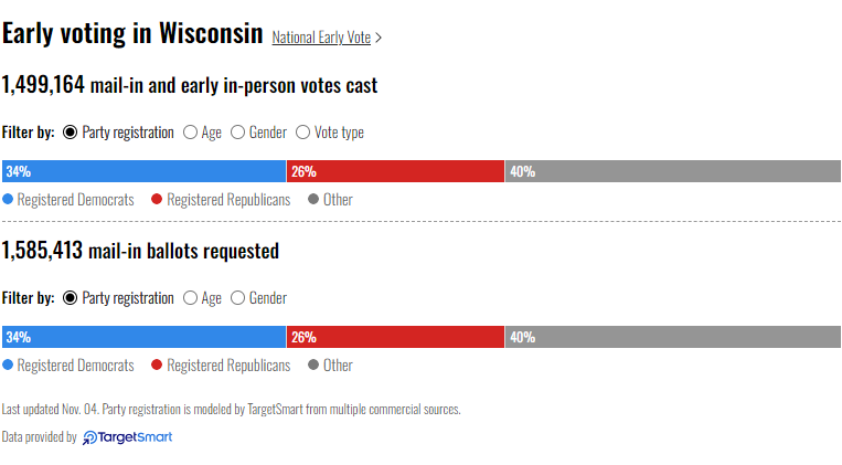 1,777,019 phiếu bầu qua thư và trực tiếp đã được bỏ. 57% người ghi danh đảng DC, 33% người đảng CH và 10% cử tri độc lập: