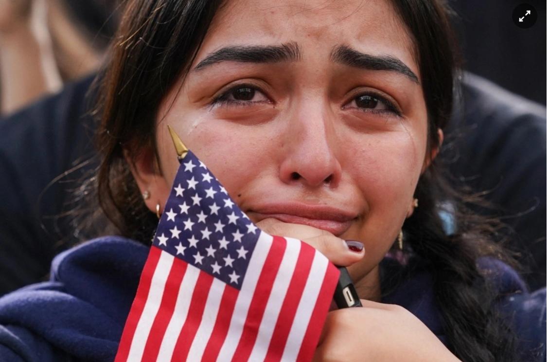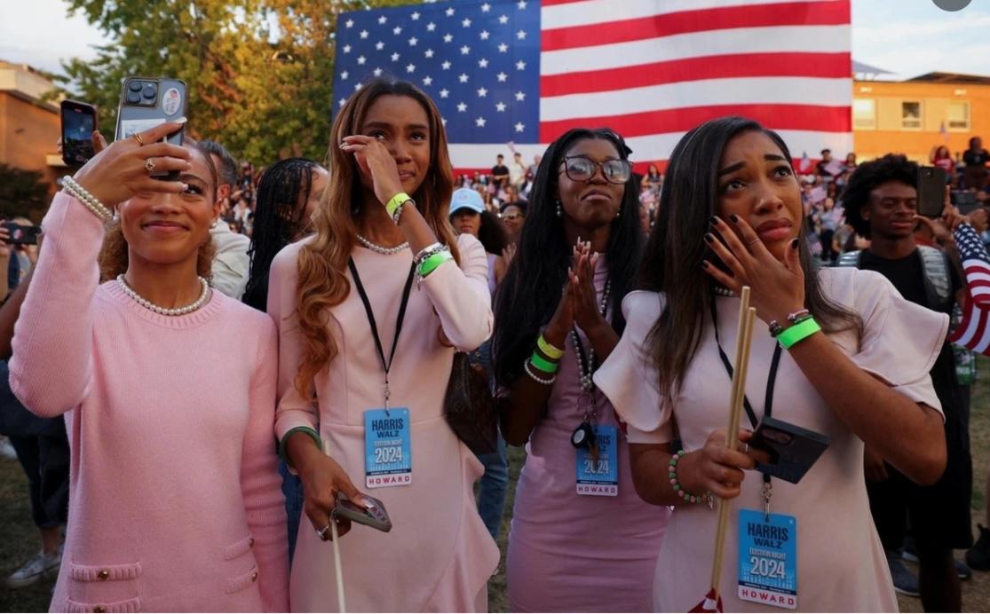 Một người ủng hộ bà Kamala Harris rơi nước mắt sau thất bại của đảng Dân chủ ngày 6/11. Ảnh: Reuters.