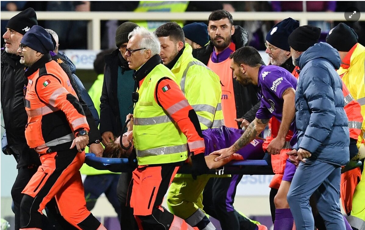 Phút 17, Edoardo Bove đổ gục trên sân và có biểu hiện co giật. Nhiều đồng đội đã chạy đến, đút tay vào miệng để giúp tiền vệ sinh năm 2002 không bị nuốt lưỡi.