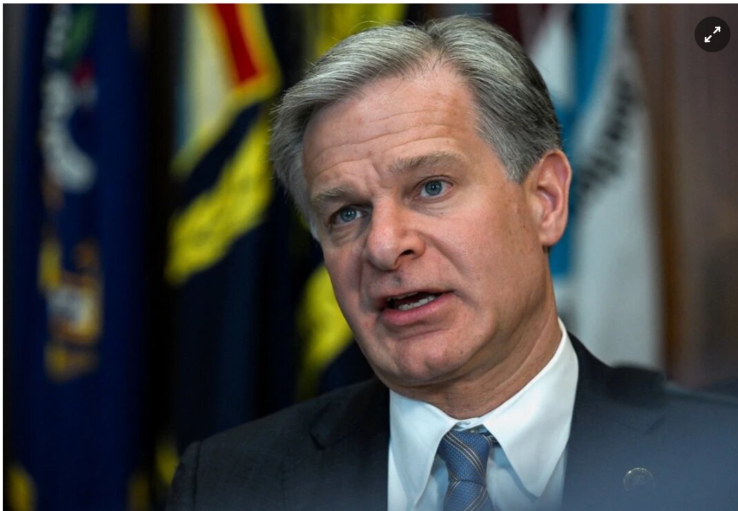 Giám đốc FBI Christopher Wray thông báo phục vụ cho đến khi chính quyền hiện tại kết thúc vào tháng 1/2025 và sau đó từ chức. Ảnh: New York Times.