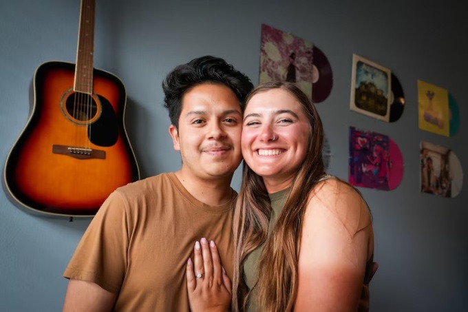 Oscar Silva và vợ Natalie Taylor tại nhà riêng ở thành phố Denton, bang Texas hồi tháng 7. Ảnh: Dallas Morning News