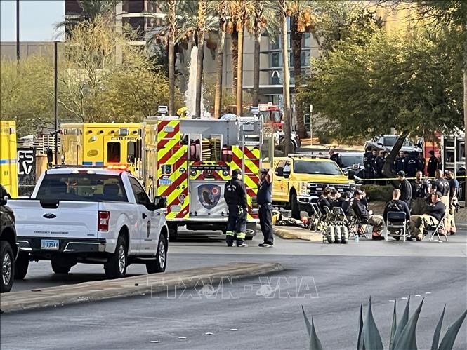 Lực lượng phản ứng nhanh được triển khai tại hiện trường vụ nổ xe Tesla Cybertruck bên ngoài Khách sạn quốc tế Trump ở Las Vegas, bang Nevada, Mỹ ngày 1/1/2025.