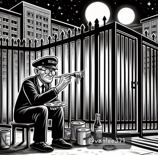 (Câu chuyện vui sưu tầm hư cấu này kể về một người bảo vệ trung thành và đầy trách nhiệm ở thời chưa có nhiều CCTV như bây giờ. Vì bây giờ đâu đâu cũng có thể có camera theo dõi nên mọi chuyện sẽ đơn giản hơn.)