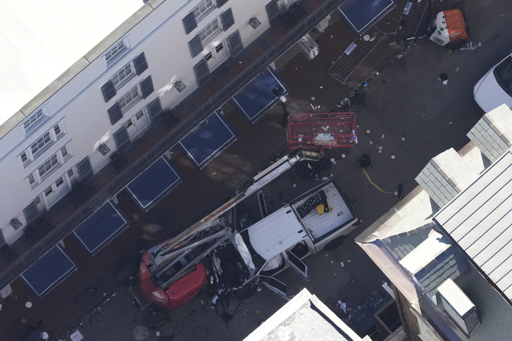 Điều tra viên phong tỏa hiện trường vụ lao xe đêm giao thừa ở New Orleans ngày 1/1. Ảnh: AP
