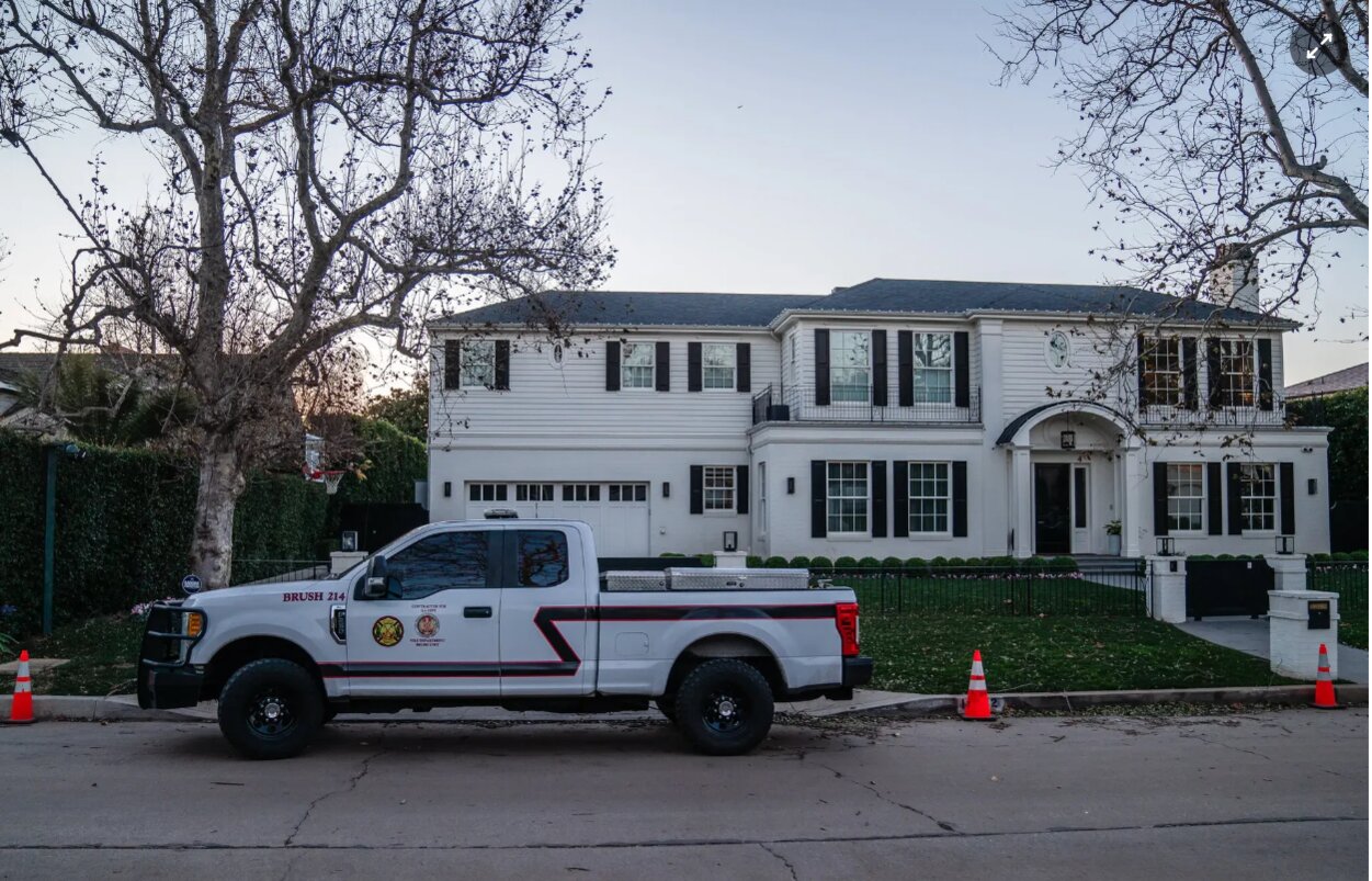 Bên ngoài một dinh thự gần như nguyên vẹn trong khu phố Palisades, hai người đàn ông giấu tên cho biết họ thường ký hợp đồng với chính quyền thành phố, song ngày hôm đó họ đang bảo vệ một ngôi nhà duy nhất. Họ không biết chủ sở hữu là ai, chỉ biết chính công ty National Wildfire Protection Service cử họ tới đây.