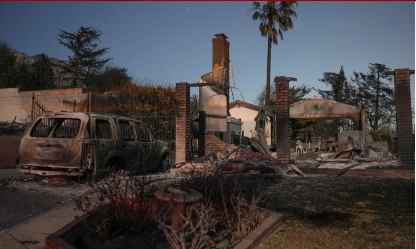 Nhà dân bị cháy ở Pacific Palisades (bang California, Mỹ) hôm 13-1. Ảnh: NEW YORK TIMES