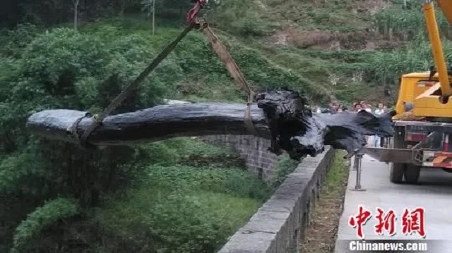 Vào tháng 5/2015, tại Tứ Xuyên, Trung Quốc, một người nông dân tên Tiểu Trung trong lúc đi mò ốc ở khe suối gần thôn nơi anh sống đã phát hiện ra một cây gỗ lớn có chiều dài 20 mét. Dù bị ngâm dưới nước nhưng cây gỗ này lại tỏa ra một mùi thơm thoang thoảng rất dễ chịu, bề mặt mềm mịn nhưng chất gỗ lại cứng cáp như đá.