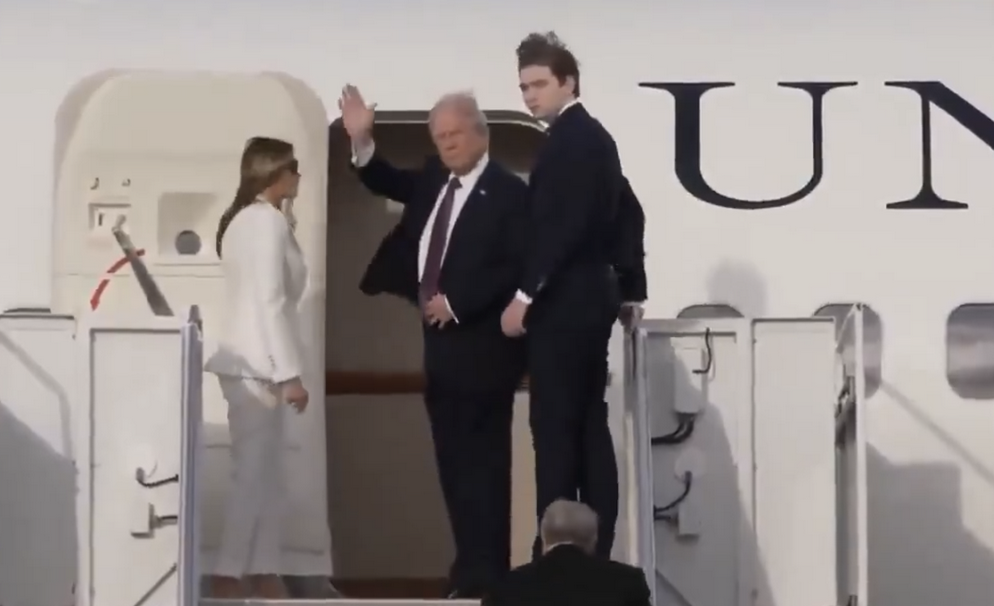 Ông Trump cùng bà Melania và con trai Barron đều có vẻ mặt nghiêm túc và không mỉm cười khi lên máy bay. Điều này tương tự với thái độ nghiêm túc trong bức ảnh nhậm chức chính thức của ông Trump, bức ảnh này được so sánh với bức ảnh tội phạm nổi tiếng của ông.