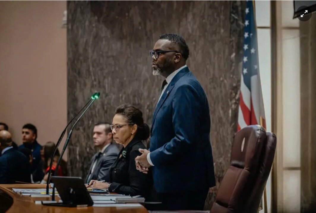 Thị trưởng Chicago Brandon Johnson là một trong những quan chức Illinois bị nêu tên trong vụ kiện. Ảnh: New York Times.