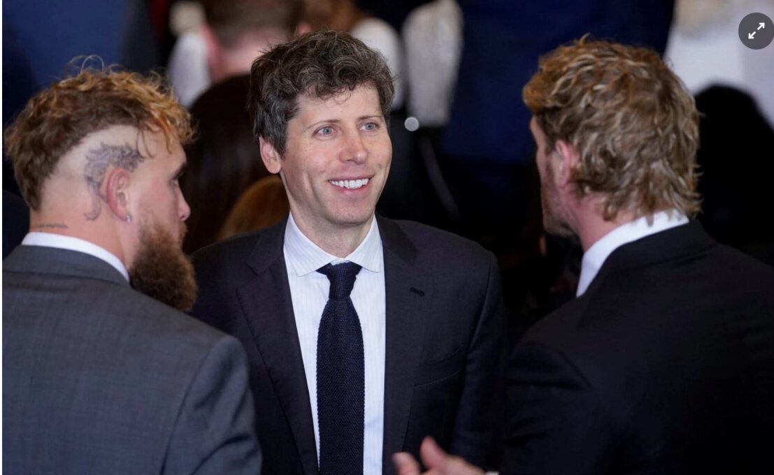 Sam Altman với võ sĩ Jake Paul (trái) và anh trai là Logan Paul (phải) tại lễ nhậm chức của tổng thống Trump. Ảnh: Alexander Drago.