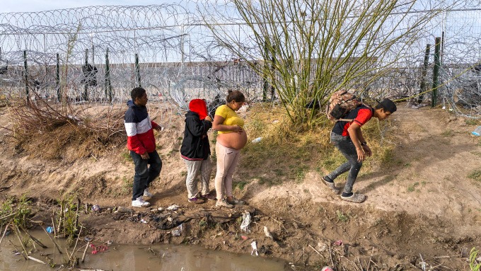 Thai phụ Venezuela vượt biên giới Mỹ - Mexico vào bang Texas, tháng 3/2024. Ảnh: AFP