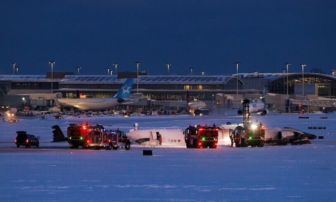 On Monday, a Delta Air Lines regional jet overturned upon landing at Toronto Pearson International Airport amid strong winds following a major snowstorm, injuring 18 of the 80 people on board, officials reported. Among the injured, three passengers, including a child, suffered critical injuries.