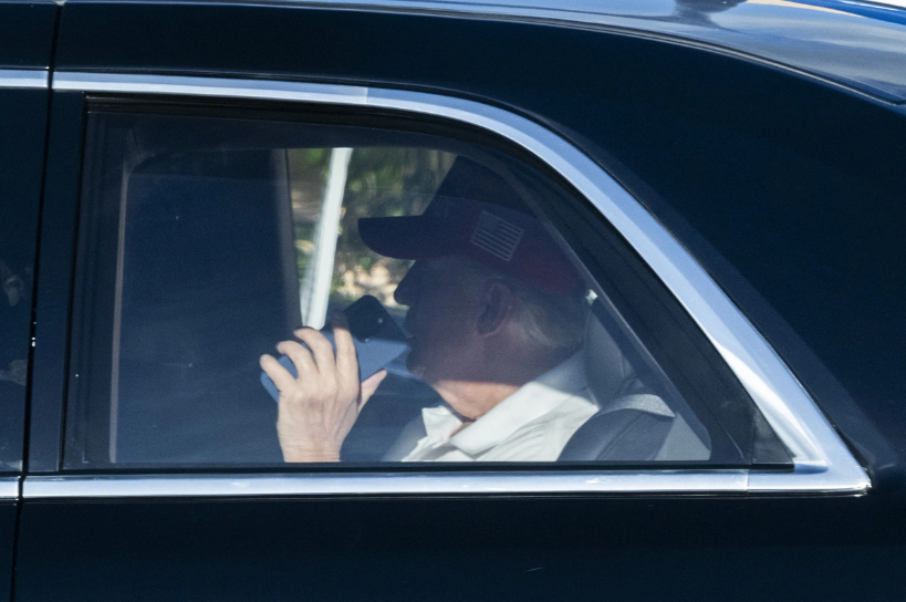 Ông Trump bị bắt gặp vào ngày 9-2 khi rời khỏi dinh thự Mar-a-Lago để đi đánh golf - Ảnh: AFP