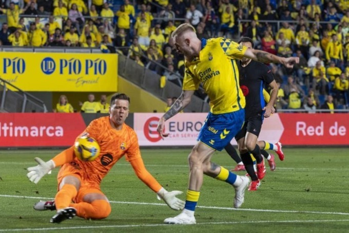 Szczesny giải nguy cho Barca trong trận thắng Las Palmas 2-0 tối 22/2 ở vòng 25 La Liga. Ảnh: EFE