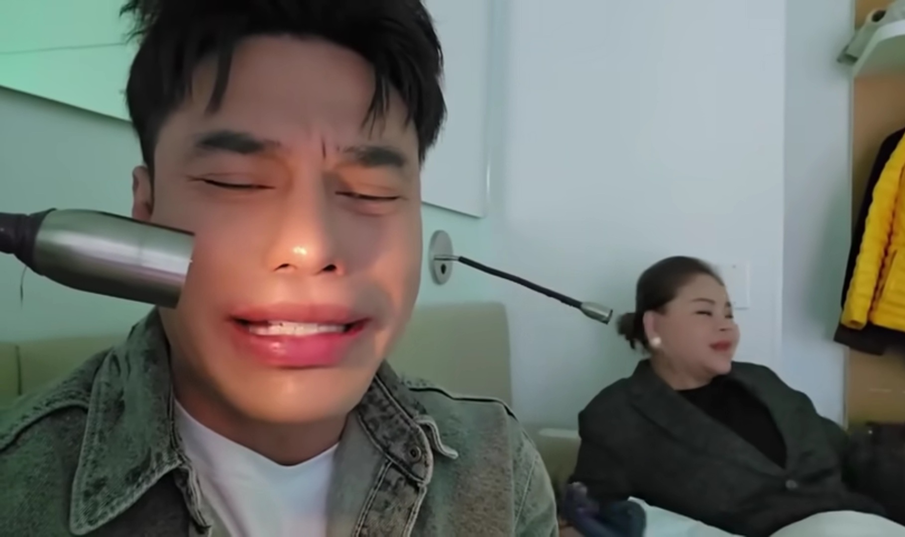 Nam diễn viên thốt lên: “Tôi đang ngồi sửa vali, vỡ rồi. Tôi không có tiền mua vali mới, bữa nay không có việc làm, đi ăn uống hết tiền rồi. Tôi nhớ quê hương quá!”.