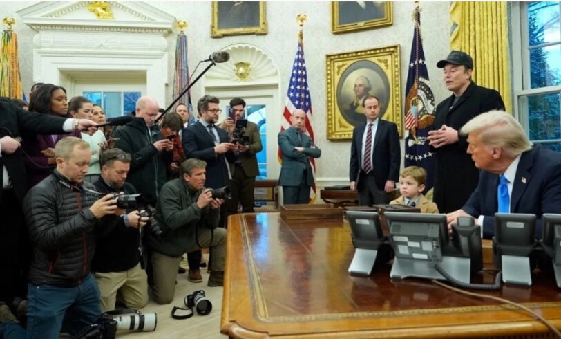 Các phóng viên tác nghiệp trong Phòng Bầu dục ở Nhà Trắng ngày 11/2. Ảnh: AP