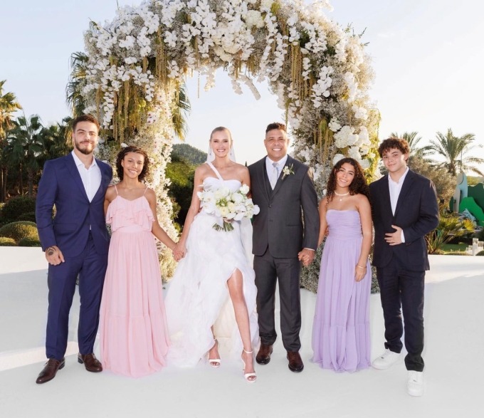 Ronaldo (thứ ba từ phải sang) cưới Celina Locks vào năm 2023, với sự xuất hiện của bốn con riêng. Ảnh: Instagram